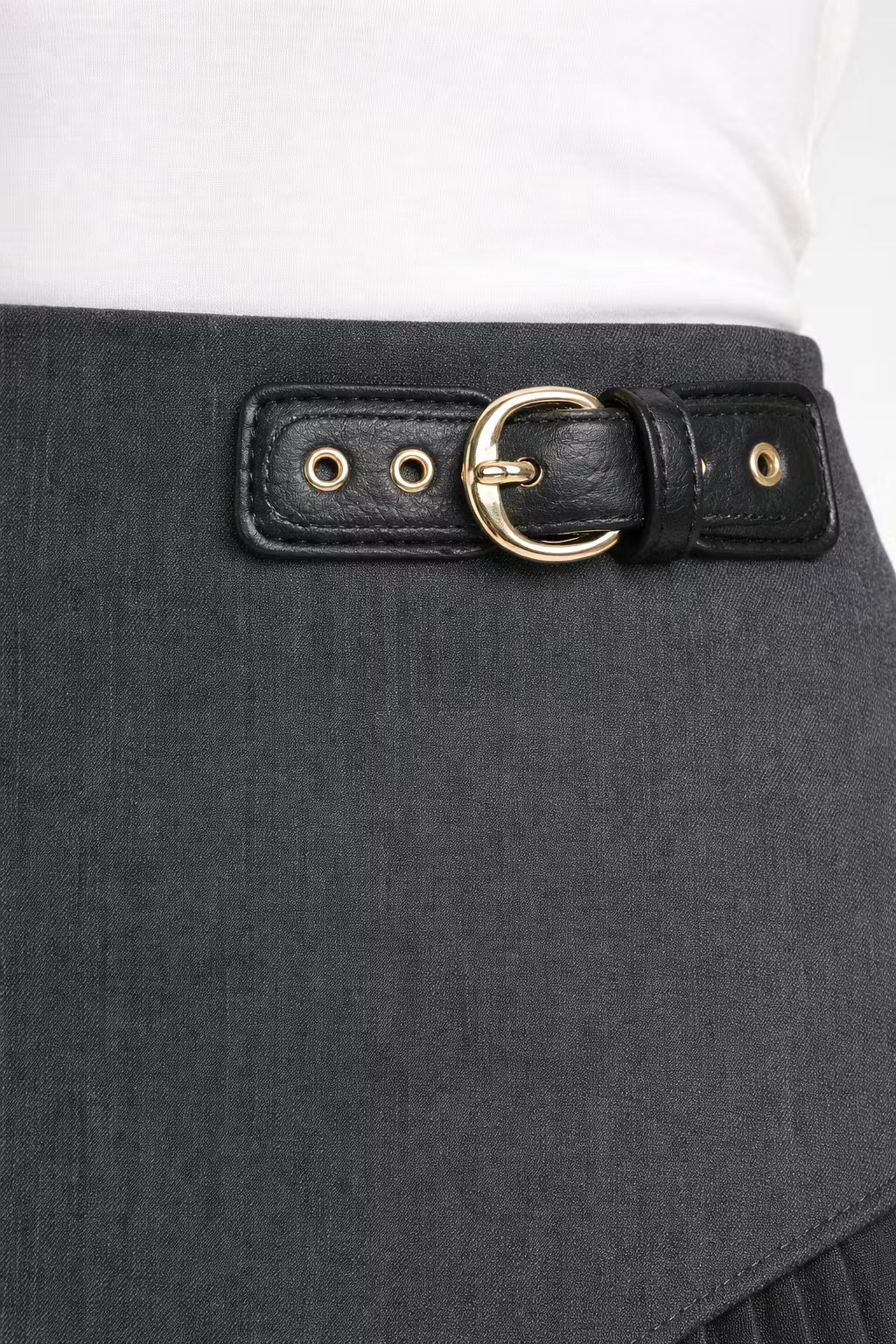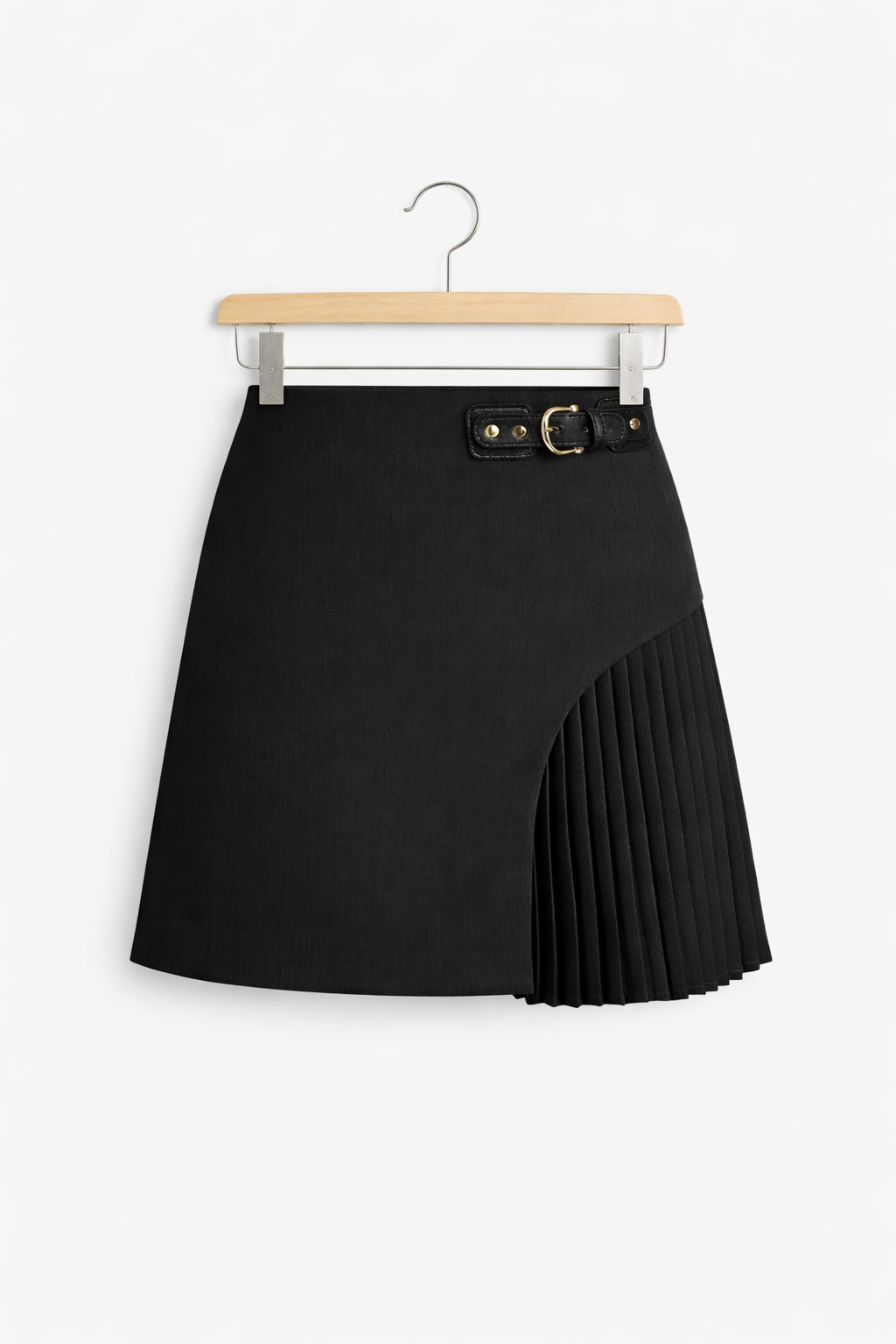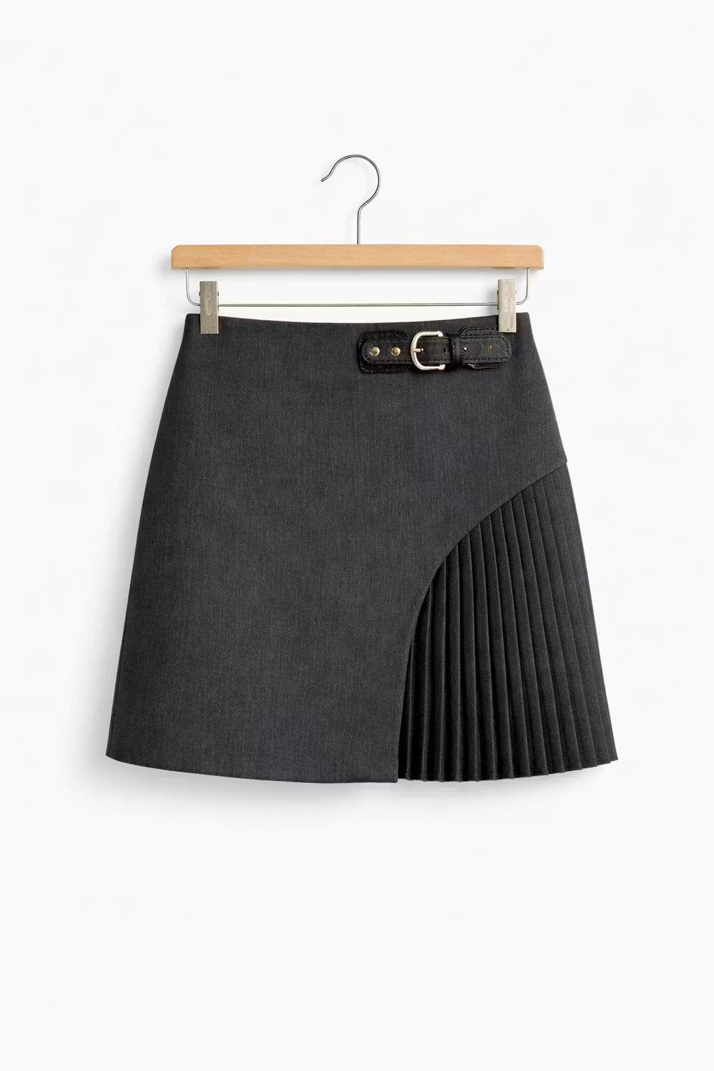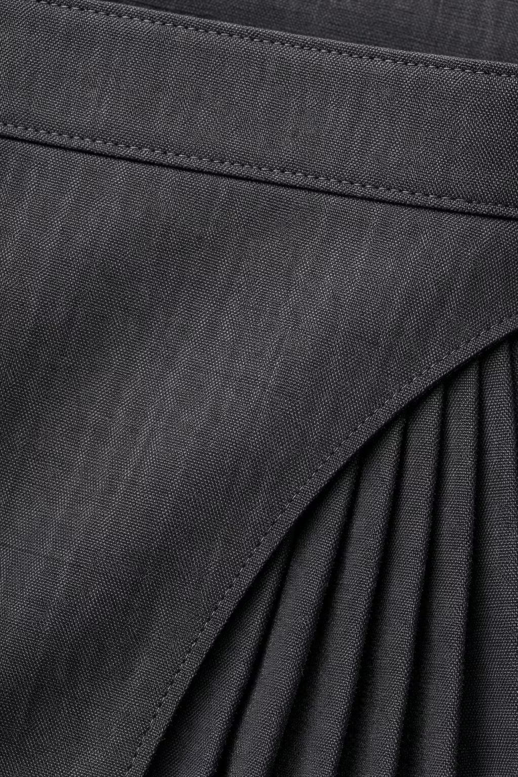 Asymetryczna mini spódnica wykonana jest ze strukturalnej tkaniny tkanej, która zachowuje wyraźną linię sylwetki oraz została uzupełniona plisowanym panelem bocznym dla kontrastu wizualnego. Wysoki stan podkreśla proporcje, a głęboki odcień berry wpisuje się w kluczowy kierunek kolorystyczny sezonu Wiosna/Lato 2026. Model inspirowany jest nowoczesnym krawiectwem oraz rosnącym znaczeniem spódnic w aktualnych trendach. Sprawdzi się w biurze, w mieście oraz podczas wieczornych okazji jako element współczesnej polskiej garderoby.