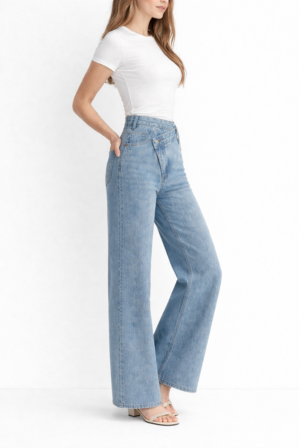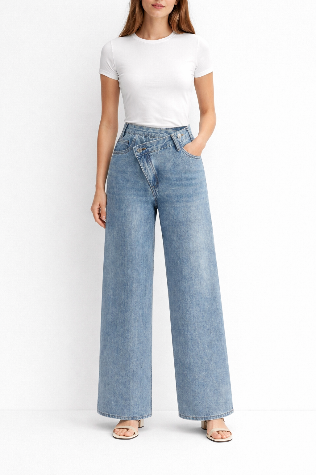 Asymetryczne dżinsy z szerokimi nogawkami